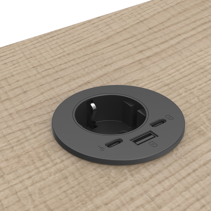 The Power-Spot® strømforsyning skjuler nyttige stikkontakter i ethvert skrivebord.