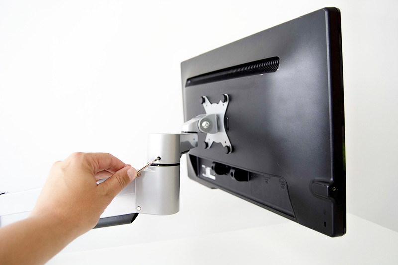 Monitorarmen kommer med både klemmefeste og gjennomgående feste, noe som gjør det fleksibelt å plassere skjermen på bordet. Alle ledd på armen er utstyrt med settskruer slik at skjermen kan låses i fast posisjon.